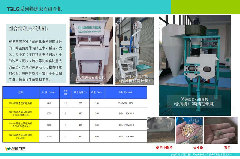 AG电子生产的TQLS系列组合清理去石机,该系列组合型清理去石机整合风机、振动筛、去石机为一体的粮食清理设备,常应用于粮食加工中清理去除大中小杂、石头以及轻杂。其中TQLS-45型清理去石机常应用1吨下粮食清理,而TQLS-85组合清理去石机,精工制作常应用于30吨左右粮食加工生产线的前段清理工序。